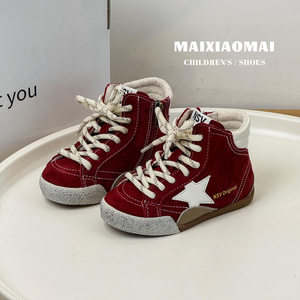迈小迈2025年秋冬新款儿童星星板鞋韩版时尚擦色高帮男女童休闲鞋