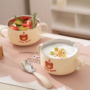 304不锈钢儿童饭碗食品级家用卡通幼儿园宝宝辅食牛奶吃饭双耳碗