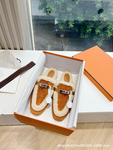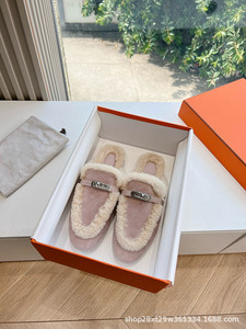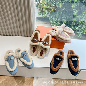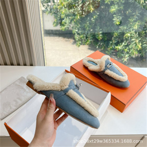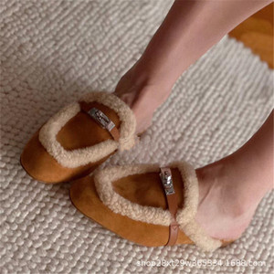 2024秋冬皮毛一体金属扣半拖女平底室外毛毛穆勒毛拖保暖包头拖鞋