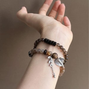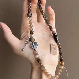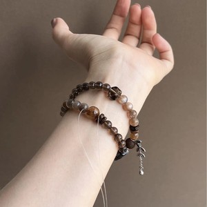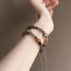 幸柿|天然双圈茶水晶奶茶月光石黄金胶花沉香纯银女高级感禅意手