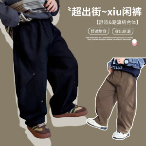 男童秋季四扣棉布弯刀裤2025春秋装儿童帅气百搭运动裤中小童长裤