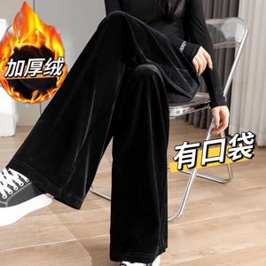 金丝绒阔腿裤女加绒感垂感丝绒女裤子秋冬高腰直筒裤大码