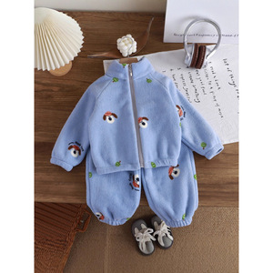 秋冬季加绒加厚睡衣套装韩版男童儿童家居服女童保暖套装童装批发