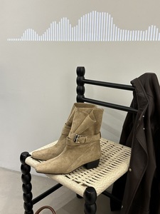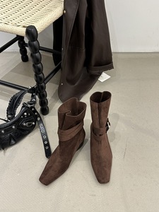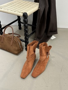 2025新款法式方头粗跟切尔西短靴女瘦瘦靴马丁靴老钱风复古西部靴
