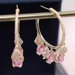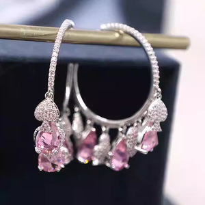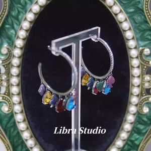 甜酷风扑克牌桃心梅花水滴流苏耳扣微镶锆石彩色耳环轻奢小众耳饰