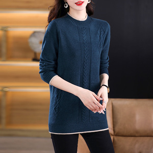 红色毛衣女士秋冬季2025年新款小个子中长款妈妈打底衫遮屁股上衣
