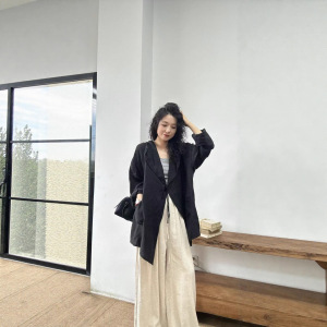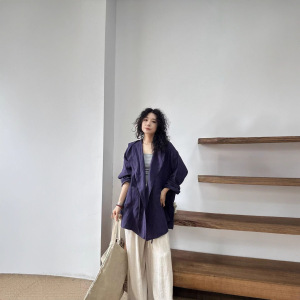 秋季新款 连帽宽松文艺亚麻衬衫 休闲韩版帽衫外套衬衣女