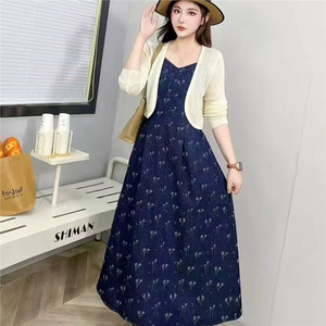 牛仔碎花吊带连衣裙女2025秋季新款针织外搭其中时尚小个子两件套