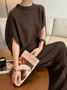 秀熙熙2025秋季新款黑标气质圆领马海毛针织衫短袖上衣小衫25293