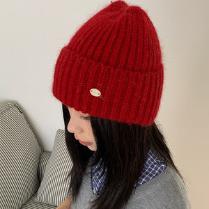 含20%兔毛绒针织毛线帽柔软多色休闲百搭纯色厚实简约保暖护耳帽