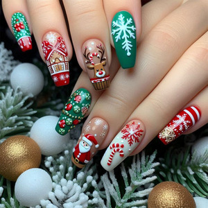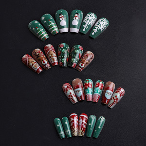 美甲甲片穿戴式红绿色长梯麋鹿雪花圣诞老人圣诞节日美甲假指甲贴