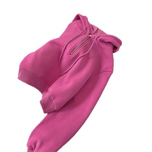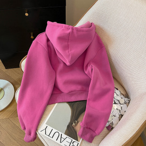 2025秋冬小个子宽松拉链玫红色连帽卫衣女设计感超好看长袖上衣