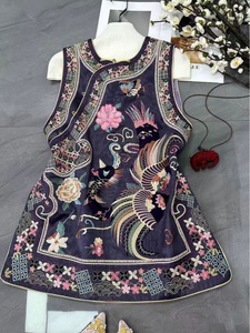深圳南油重工刺绣凤戏牡丹醋酸印花新中式国风马甲时尚气质新中式