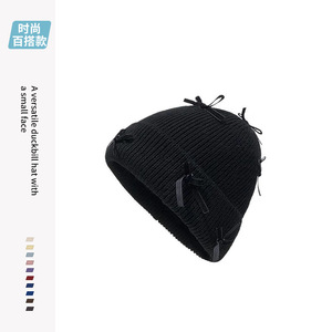 韩版蝴蝶结针织冷帽女2025新款秋冬季百搭护耳保暖显脸小毛线帽子