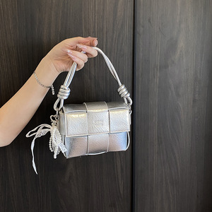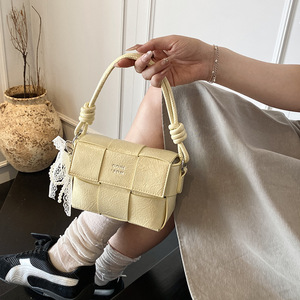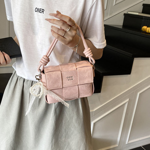 跨境高级质感编织包秋季新款手提包手抓纹单肩包时尚字母斜挎包女