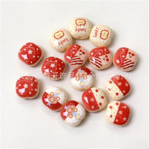 通孔亚克力星星小熊印花小馒头串珠笔配件手机链diy手工饰品材料