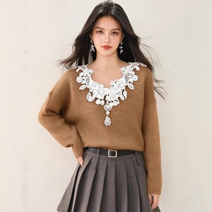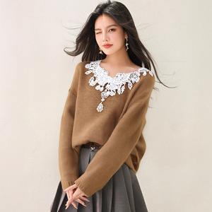 R9303轻熟绣花V领厚实保暖宽松甜美少女毛衣长袖秋冬新款气质2025