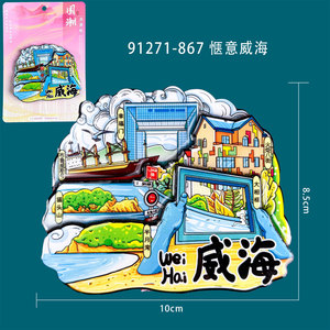 【威海系列】文创旅游城市景区纪念品创意国潮木质滴胶冰箱贴批发