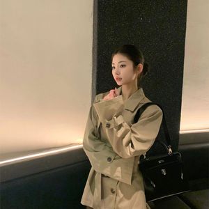 高级风衣外套秋季新款气质卡其色双排英伦小个子短款收腰大衣扣中