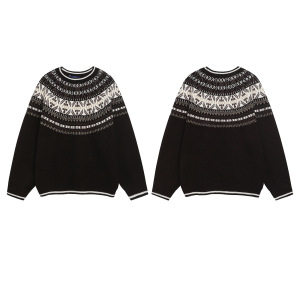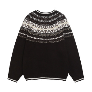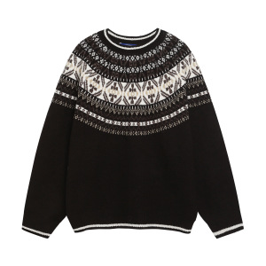 2025秋冬日系复古民族风提花套头毛衣男女百搭设计感针织衫上衣