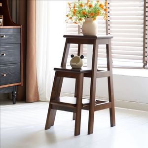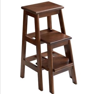 包邮/送货上门/免安装-三层胡桃色橡胶木抽拉梯凳【整装发货】