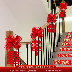 【10个装】纱幔大红_超大手拉花+方喜灯笼
