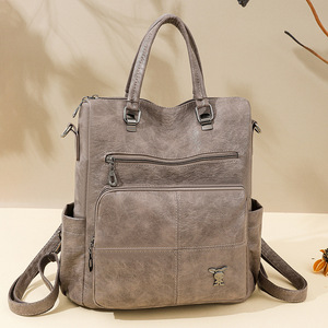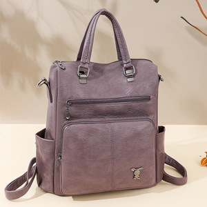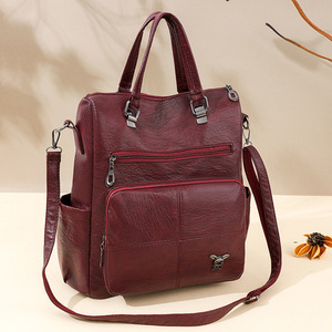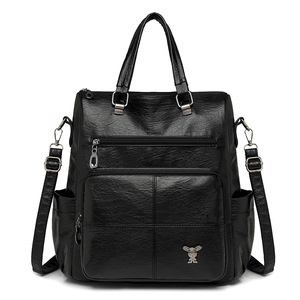 跨境多功能软皮双肩包女2025新款潮流女包大容量简约休闲女士背包