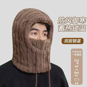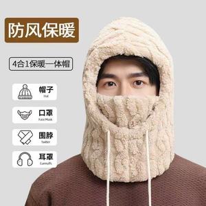 冬季骑行帽子加绒毛线帽男女户外防寒防风保暖加厚护耳围脖套头帽