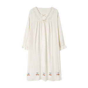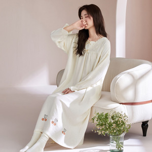 甜美公主风女士春秋季长袖睡裙2025新款睡衣纯棉纱布可外穿家居服