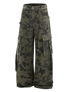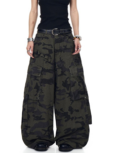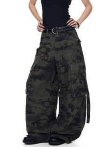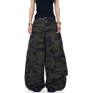 美式复古机能多口袋设计感迷彩工装裤男女潮牌宽松痞帅弯刀阔腿裤