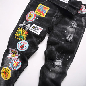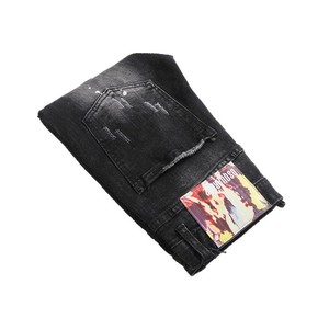 欧美2025春季朋克男式牛仔裤黑色破洞刺绣修身中腰男裤潮D4052