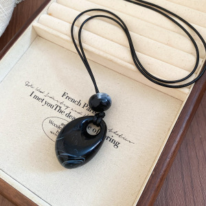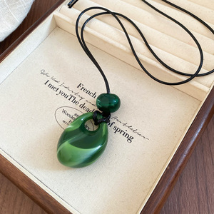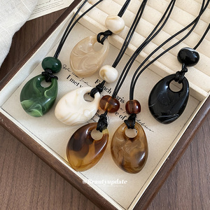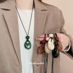 复古蜡绳水滴亚克力串珠吊坠项链美拉德风项饰小众设计感毛衣链女