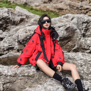 2025冬季新款羽绒服女短款连帽加厚保暖白鸭绒面包服外套潮牌