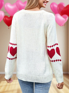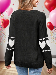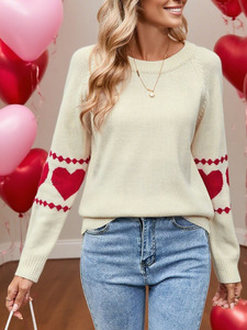 秋冬跨境欧美新款毛衣女装亚马逊长袖手肘爱心提花圆领套头针织衫