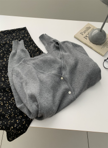 气质花边V领羊毛针织开衫女韩系慵懒感贝壳扣薄毛衣外套2025秋冬