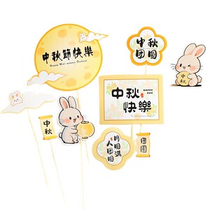 2025中秋节蛋糕装饰月满中秋花好月圆中秋节快乐烘焙装扮插牌插件