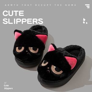 可爱小黑猫棉拖女居家棉拖鞋女加绒棉拖鞋男保暖鞋月子鞋女包头拖