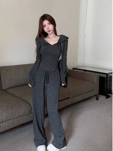 运动休闲两件套连帽卫衣外套女装春季阔腿裤长裤2025新款时尚套装