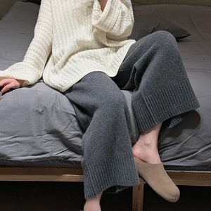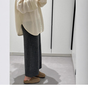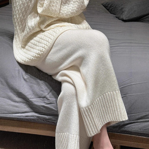 小个子 韩系ins灰色九分针织裤女2025秋冬季外穿羊绒裤阔腿休闲裤