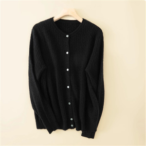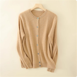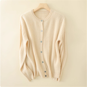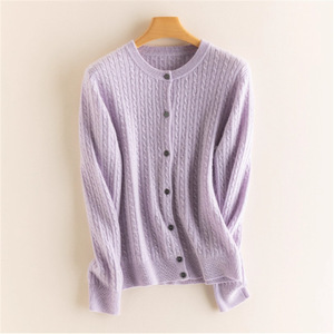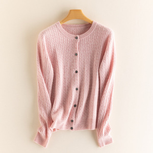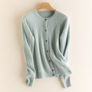 软糯风小麻花开衫女圆领纯羊绒宽松针织小外套高级感秋季上衣灰色