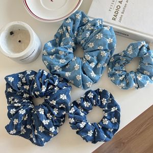 牛仔蓝玫瑰花头绳女2025新款花朵发圈后脑勺百搭外出大号头花饰品