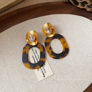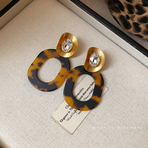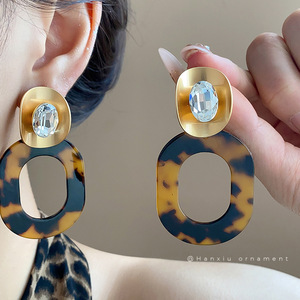 欧美跨境银针豹纹圆形镶钻树脂耳钉时尚气质耳环轻奢高级感耳饰女