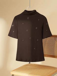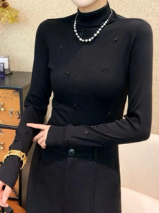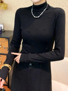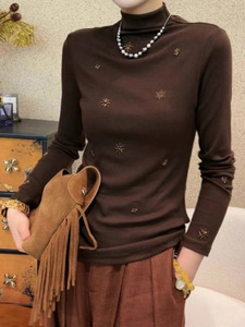 半高领中袖打底衫女2025秋季新款洋气重工钉珠修身内搭针织衫上衣