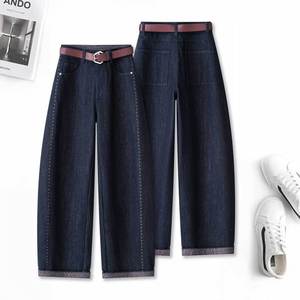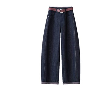 2025丹宁蓝卷边弯刀裤女秋季新款高腰显高显瘦垂感小个子牛仔裤
