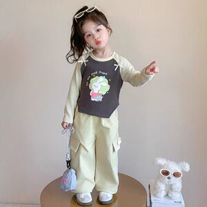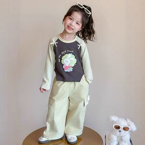 女童春秋套装2025新款儿童长袖T恤打底衫女宝卫衣工装裤两件套