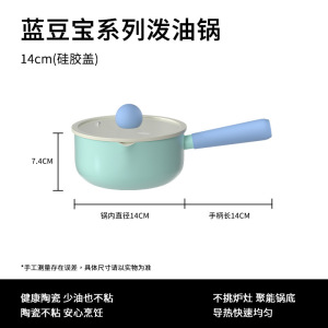 新款陶瓷釉多功能小烩锅蓝豆宝系列小奶锅不粘锅宝宝辅食锅泼油锅