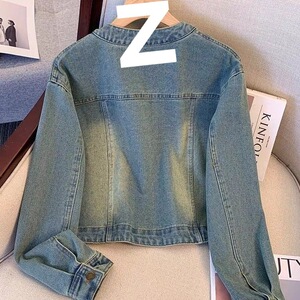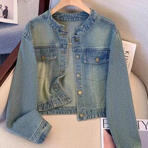 复古短款牛仔外套女2025新款春秋款小个子圆领牛仔衣夹克上衣