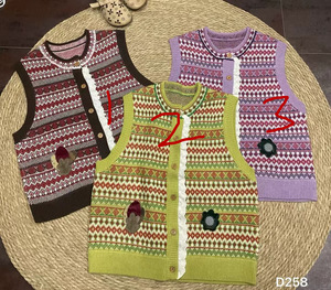 258森系文艺复古圆领单排扣坎肩百搭花色针织开衫慵懒背心毛衣
