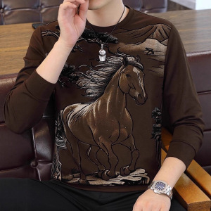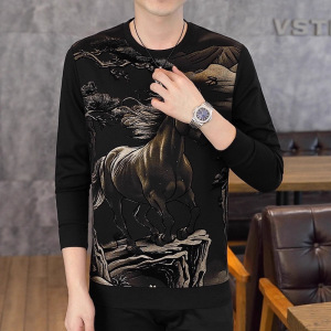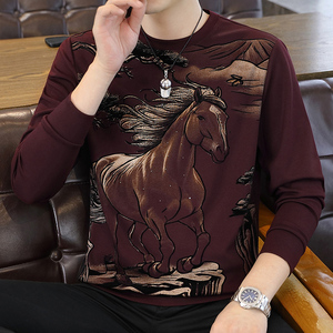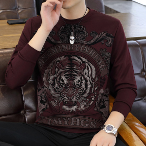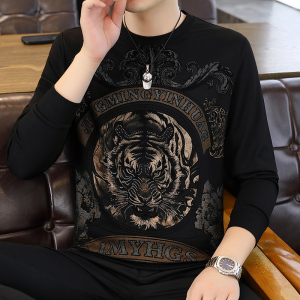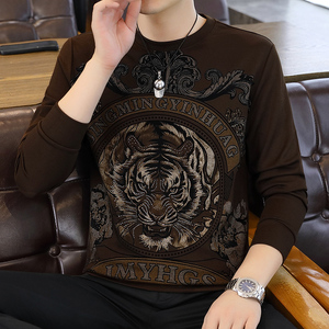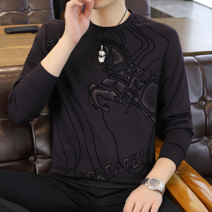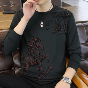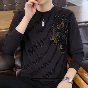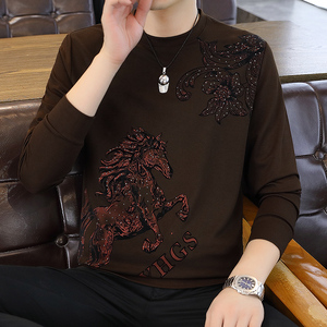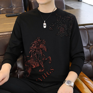 欧货套头卫衣男士春秋季新款百搭长袖上衣潮流中青年痞帅烫钻T恤