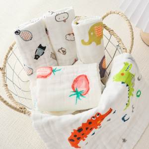 跨境婴幼儿纱布口水巾六层纯棉方巾a类印花儿童洗脸巾卡通图案